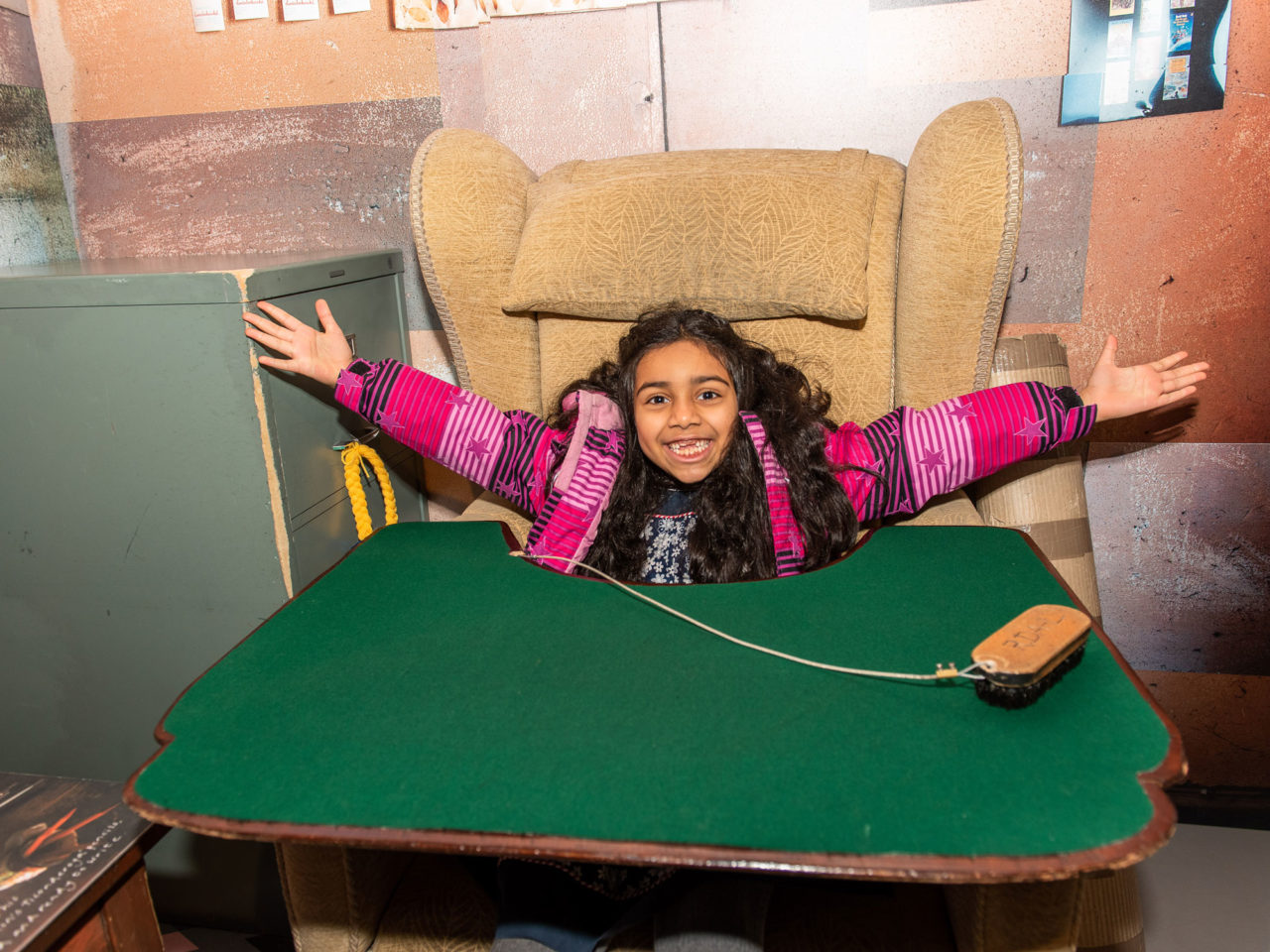 Your chance to see the centrepiece of the Museum, Roald Dahl's Writing Hut. Peek at all the unusual objects Roald kept on hand while he wrote and discover how his real life experience inspired the stories. You can also see some props and costumes from film and tv adaptations, peek in drawers and have a go on the Spark-o-meter.