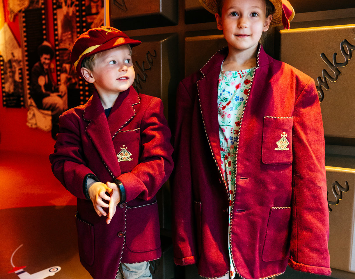 Step through the giant chocolate doors (that really do smell of chocolate!) to discover how some of Roald Dahl's childhood experiences inspired his books. Rummage through Roald's school satchel, find out about some school pranks and dress up in Roald's school uniform.